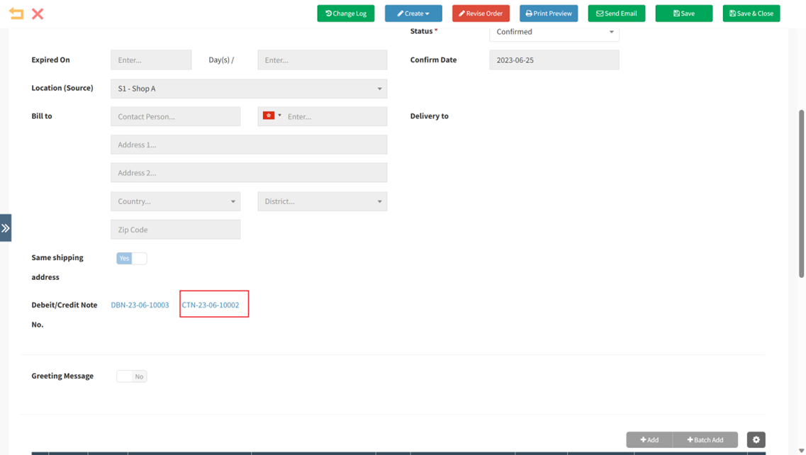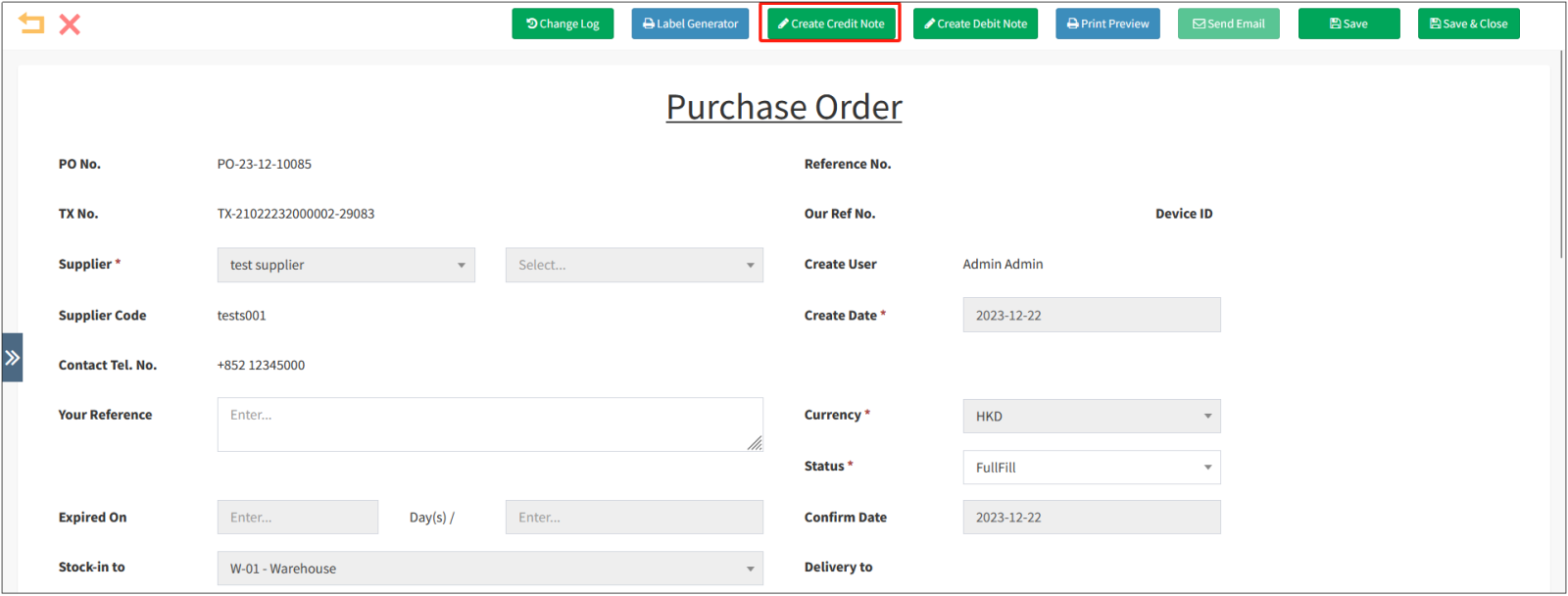 When merchant B supplies goods to merchant A, and merchant A has not paid merchant B for the time being, merchant A can issue a Credit Note to merchant B.