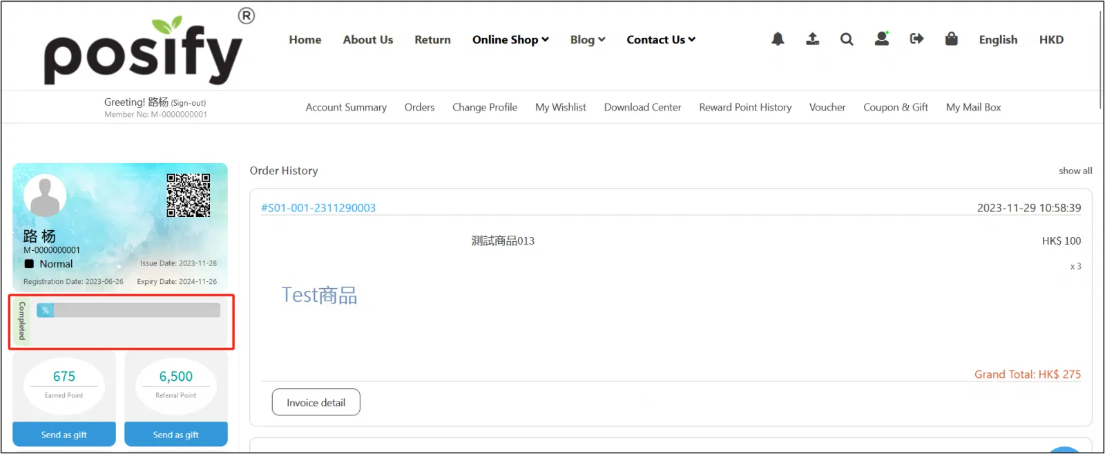 Show Progress: After the merchant sets the upgrade conditions, the progress bar of the member's upgrade to the next membership level can be displayed on the online store membership homepage. After logging in to the account, click on the membership icon to see the membership upgrade progress on the membership homepage.