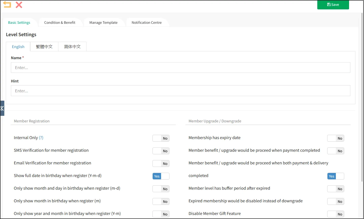 The system can set up a number of different membership levels, such as: Silver Card Member, Gold Card Member, etc. Different membership levels can set different benefits, so as to better maintain the customer base. Here's how to set up your membership tiers and benefits.