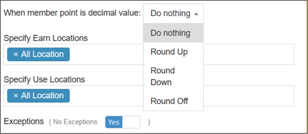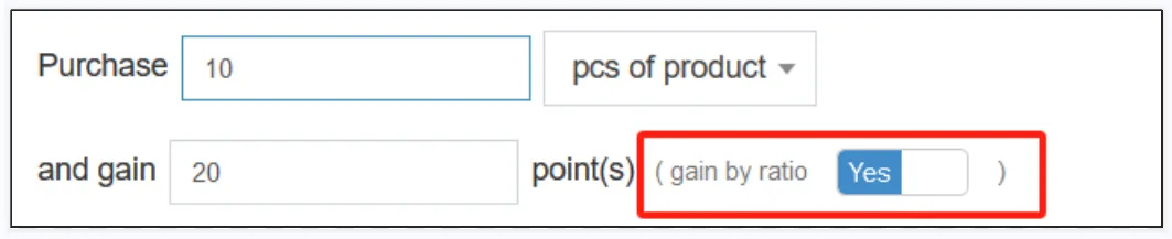 You can choose whether or not to [prorate]. As an example, if you choose Yes, then members can get 2 points for each item purchased, and if you choose No, you need to buy 10 items to get 20 points.