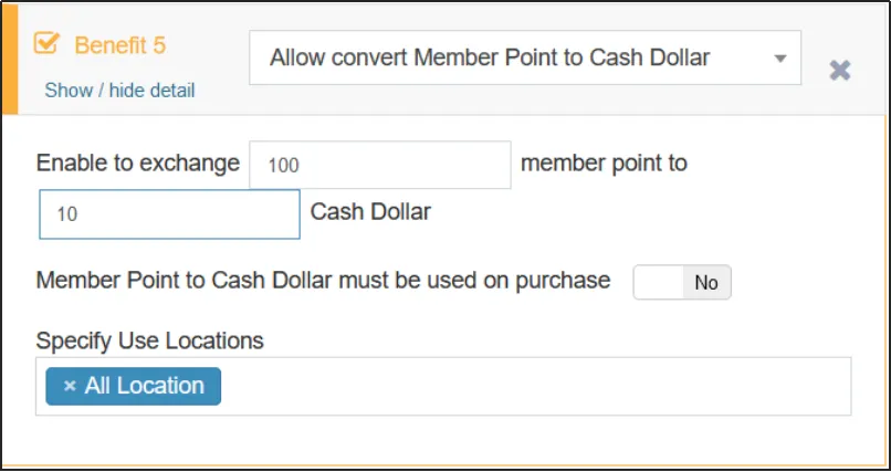 Refers to whether the member is allowed to use points to redeem shopping credits after becoming a member of the level.