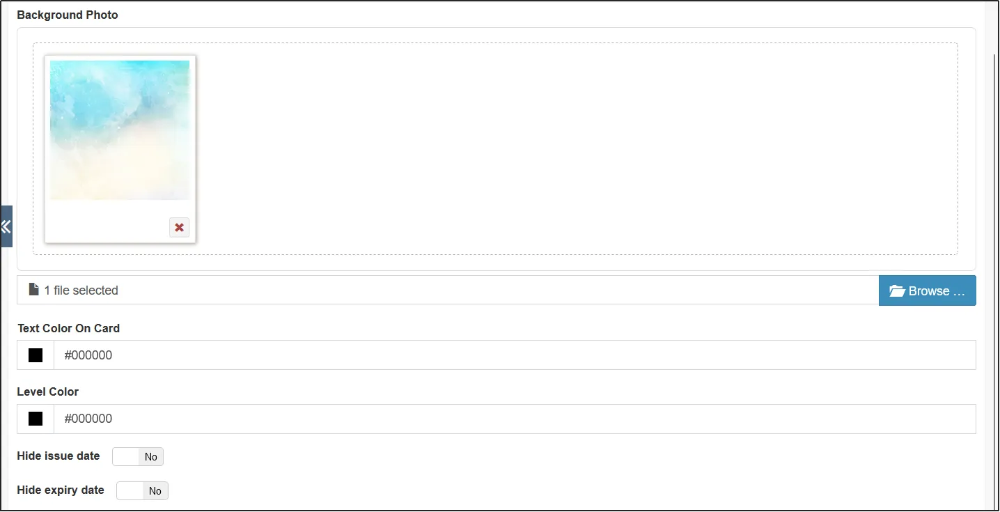 At the bottom, you can modify [Text Color] and [Grade Color], and you can also set whether to [Hide Issuance Date] and [Hide Expiration Date].