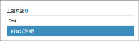 例如:如下圖所示,輸入“Test “,點擊顯示的“#Test(新增)”即可添加該自定義主題標簽。