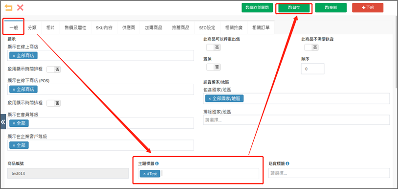 由於商品詳情下特別推薦中顯示的皆爲擁有同樣[主題標簽]的其他商品,因此需要給同類商品設置同樣的[主題標簽]。
