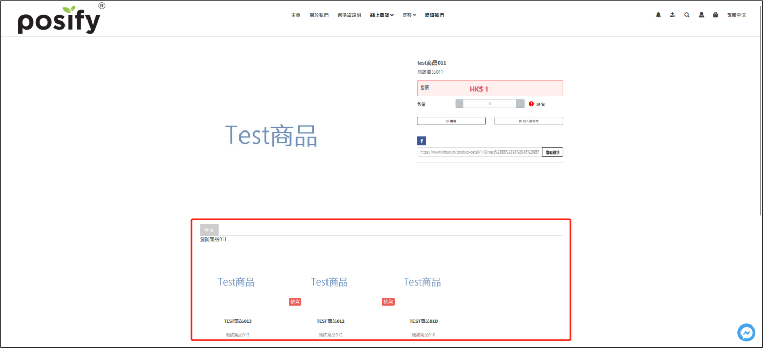 設置完畢后,在綫上商店進入擁有“Test”[主題標簽]的商品的詳情頁,可以看到下方推薦中顯示出其他擁有“Test”[主題標簽]的商品。