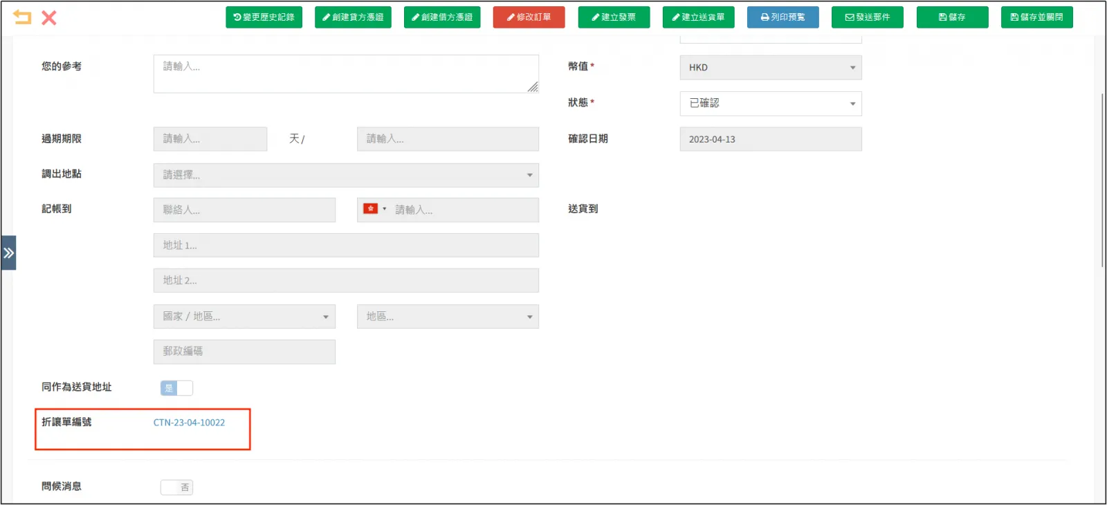 打開訂單詳情,往下可以看到折讓單編號一欄。