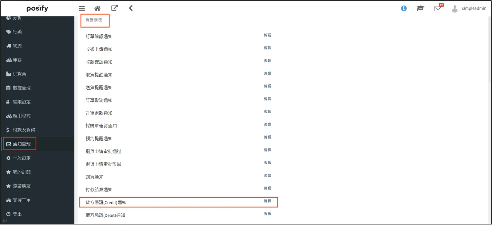 設定 Credit Note 提醒通知