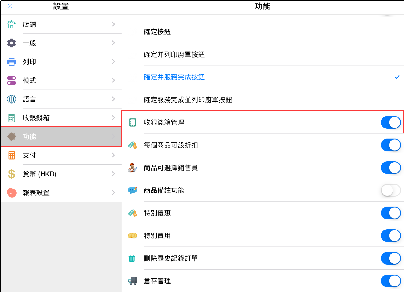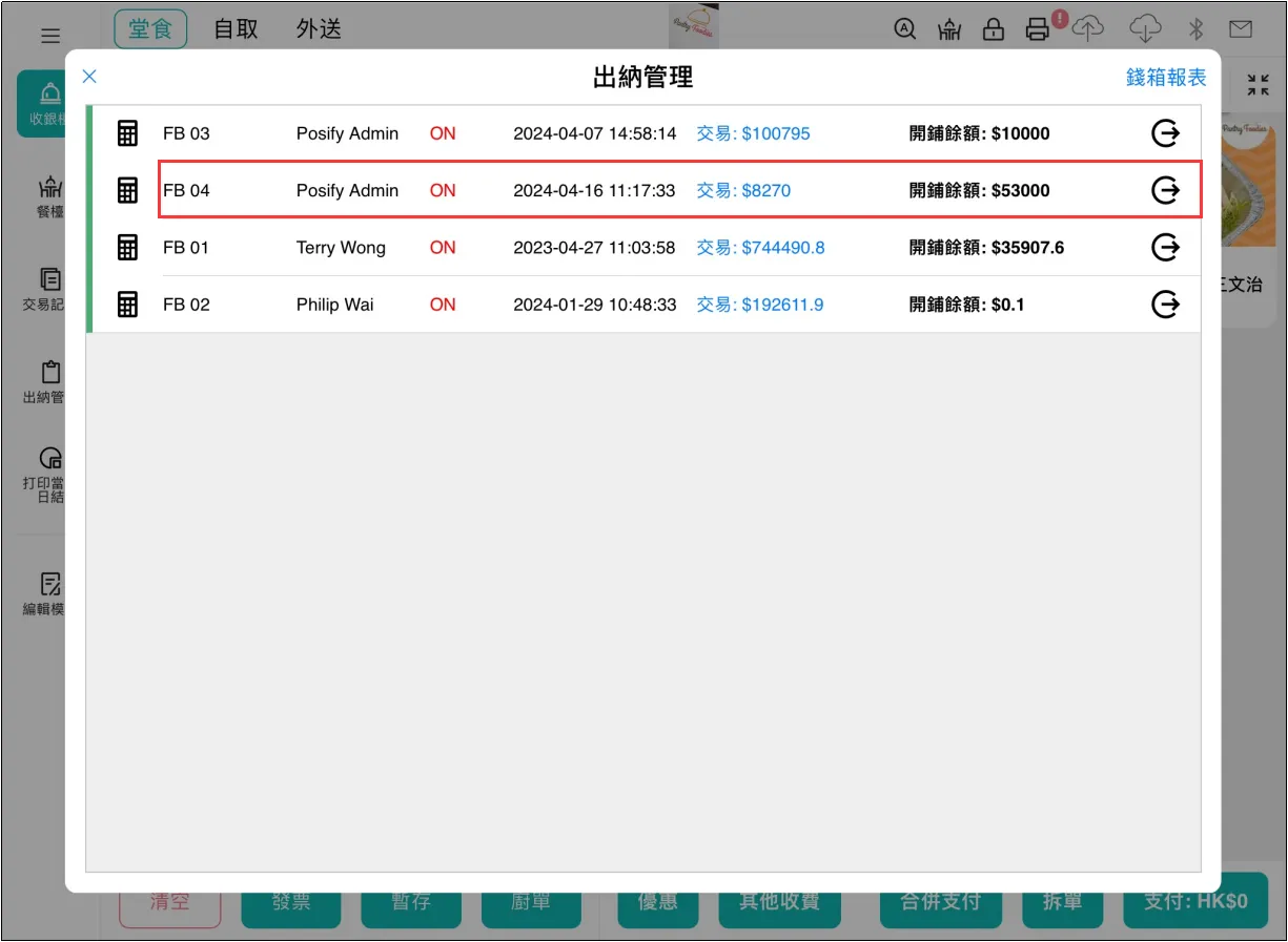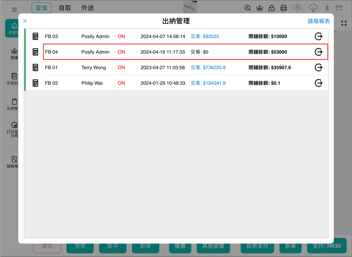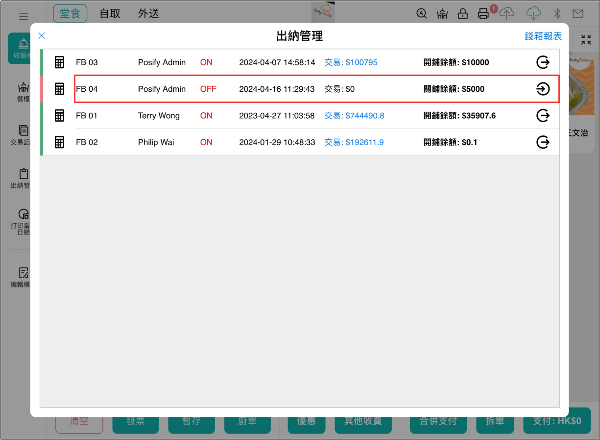 當收銀機未開啓時,可以看到狀態為OFF”。