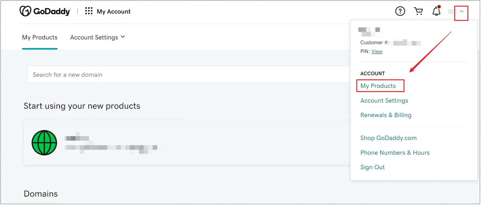 點擊我的產品,找到您購買的域名,並點擊[DNS]按鈕進入到DNS Management頁面。