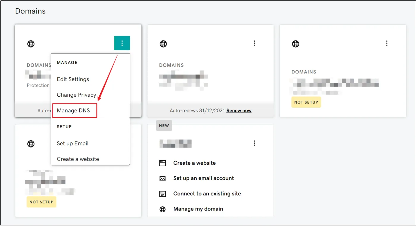 找到需要連接到Posify eShop的domain,並點擊Manage DNS按鈕。