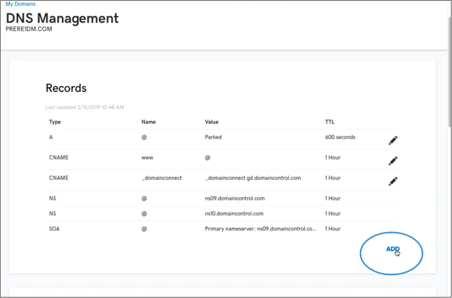 點擊Cancel關閉新增記錄窗口,找到已經存在的CNAME, WWW記錄
