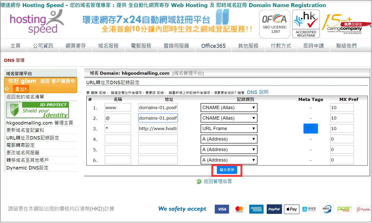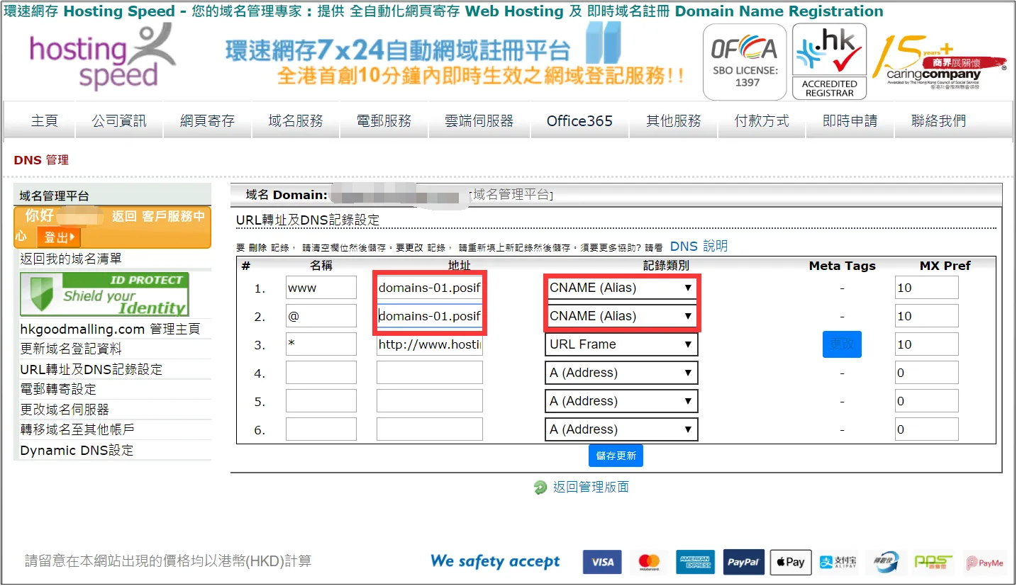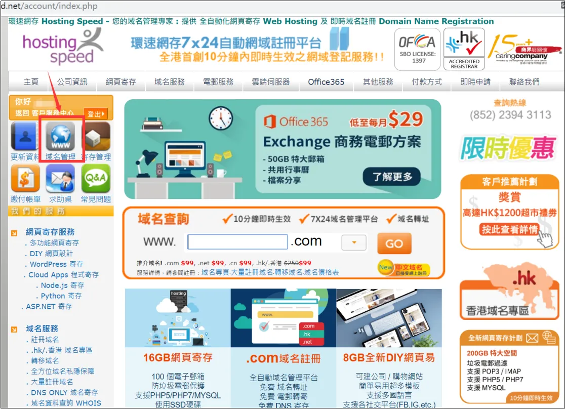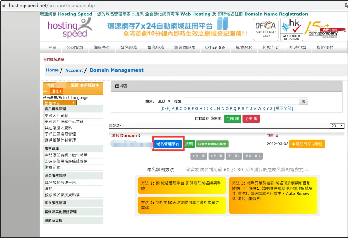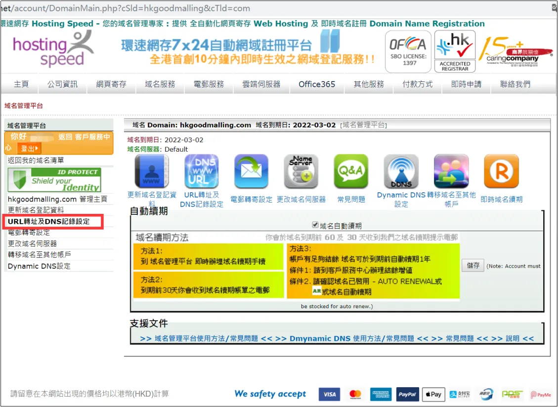 登入您購買網域的供應商網站:https://www.hkdnr.hk/。
