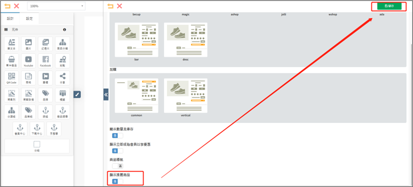 往下滑,選擇[顯示推薦商品]為 是