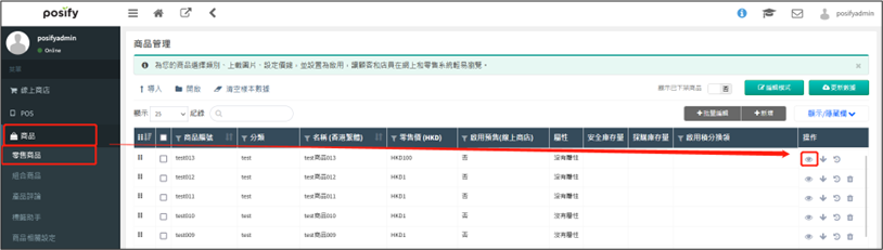 找到需要設置特別推薦的商品,點擊右邊的眼睛icon,打開商品編輯頁面。